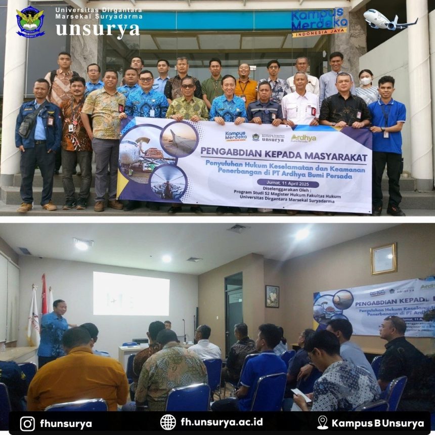 The Master of Law (S-2) Program of the Faculty of Law, Universitas Dirgantara Marsekal Suryadarma (UNSURYA), held a community service activity (Pengabdian Kepada Masyarakat/PKM) at PT. Ardhya Bumi Persada, Halim Perdanakusuma Airport, East Jakarta, on Friday, April 11, 2025, from 09.00 to 11.15 WIB.
